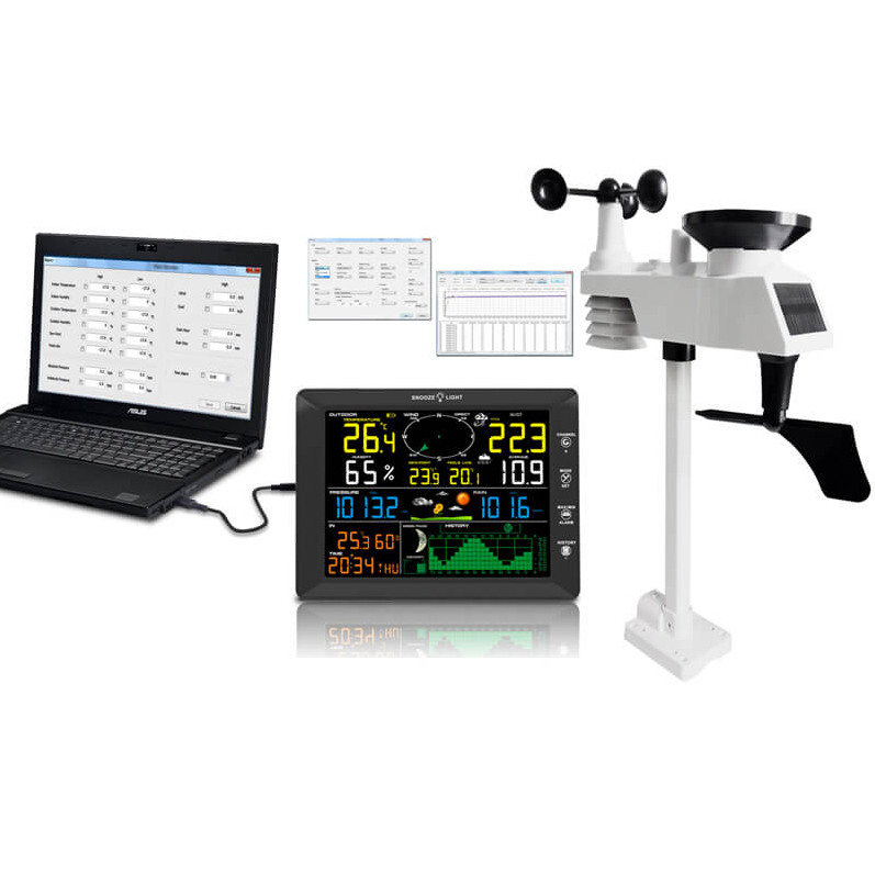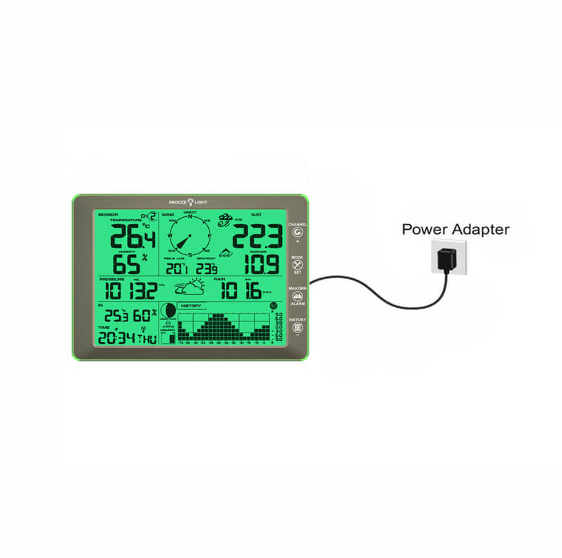 13. History graph display of in/outdoor temp, humidity, pressure, wind speed, rainfall