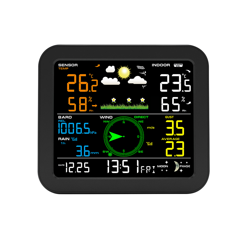 6. Wind speed and gust display(m/s, km/h, mph, knots bft) – Hi alarm