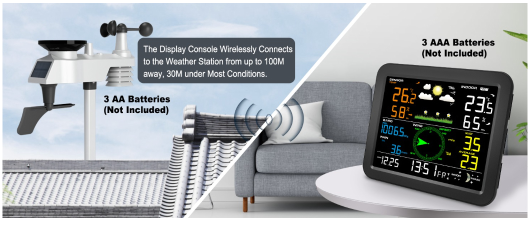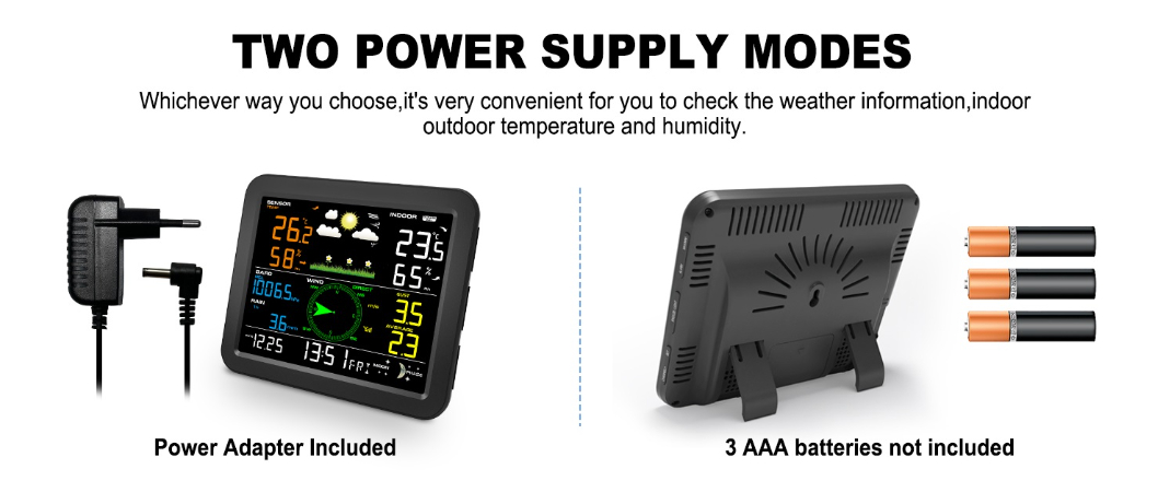 2) Integrated Outdoor Sensor: 3xAA 1.5V alkaline batteries or Lithium batteries (not included)
