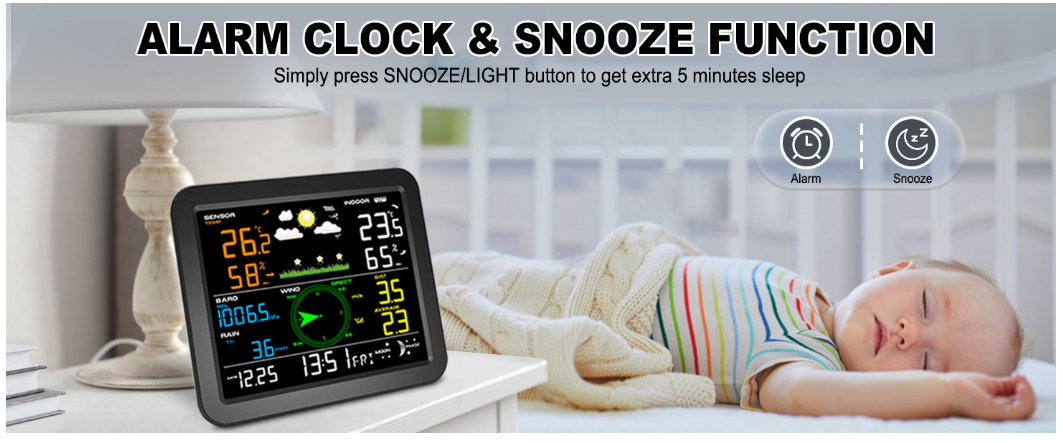 4. Integrated outdoor sensor temp(°C/°F) and humidity – Hi/Lo alarm