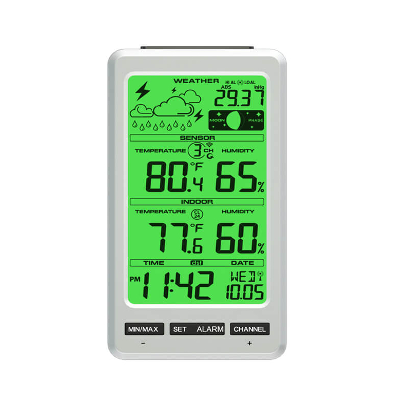 14. Display console supports up to 8 thermo-hygrometer sensors