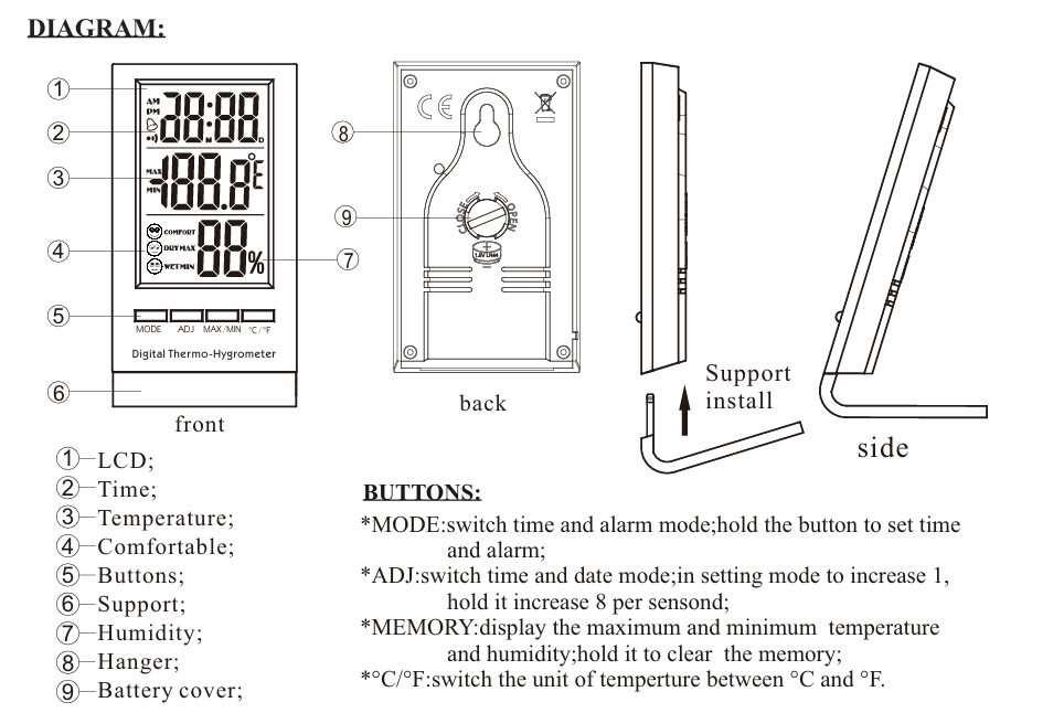 Measurement temperature range: 50 ℃ to+70 ℃ or 58F+158F;
