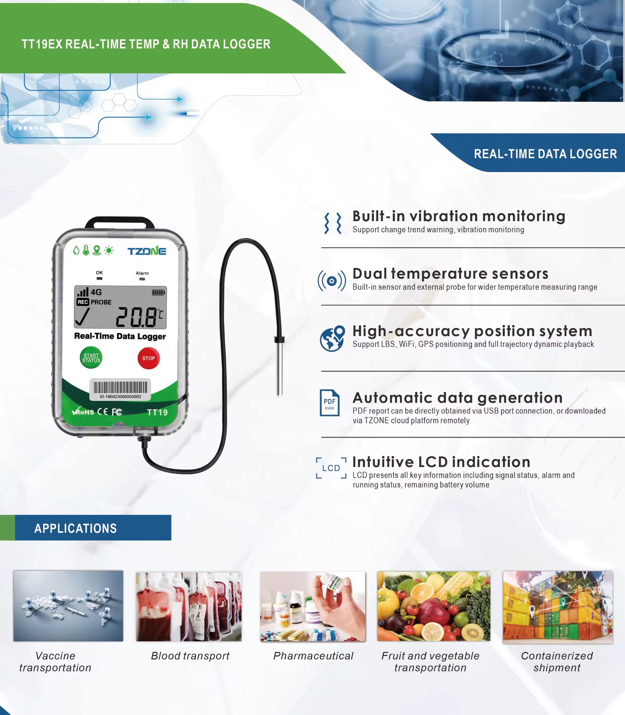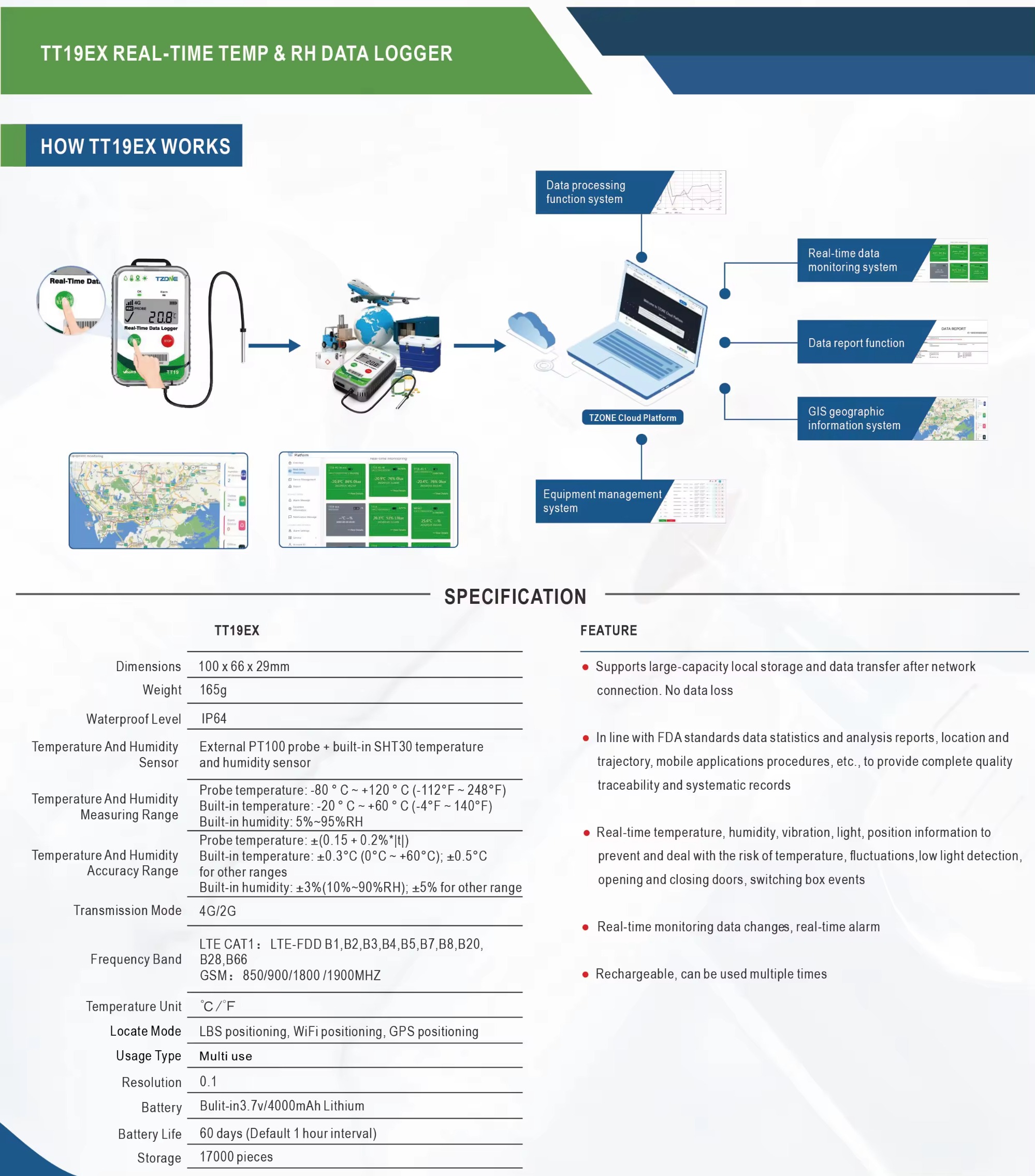 It`s time to use Cold Chain Truck GPS Tracking Real Time GPS Tracker to real-time manage and control your products while in-transit.This easy to use system provides global visibility at an affordable cost. Simply initiate a shipment and place a TT19EX real-time data logger.Cloud-based monitoring platform will then start reporting temperature,humidity,light vibration and GPS location. So you always know where are your products and in what condition.