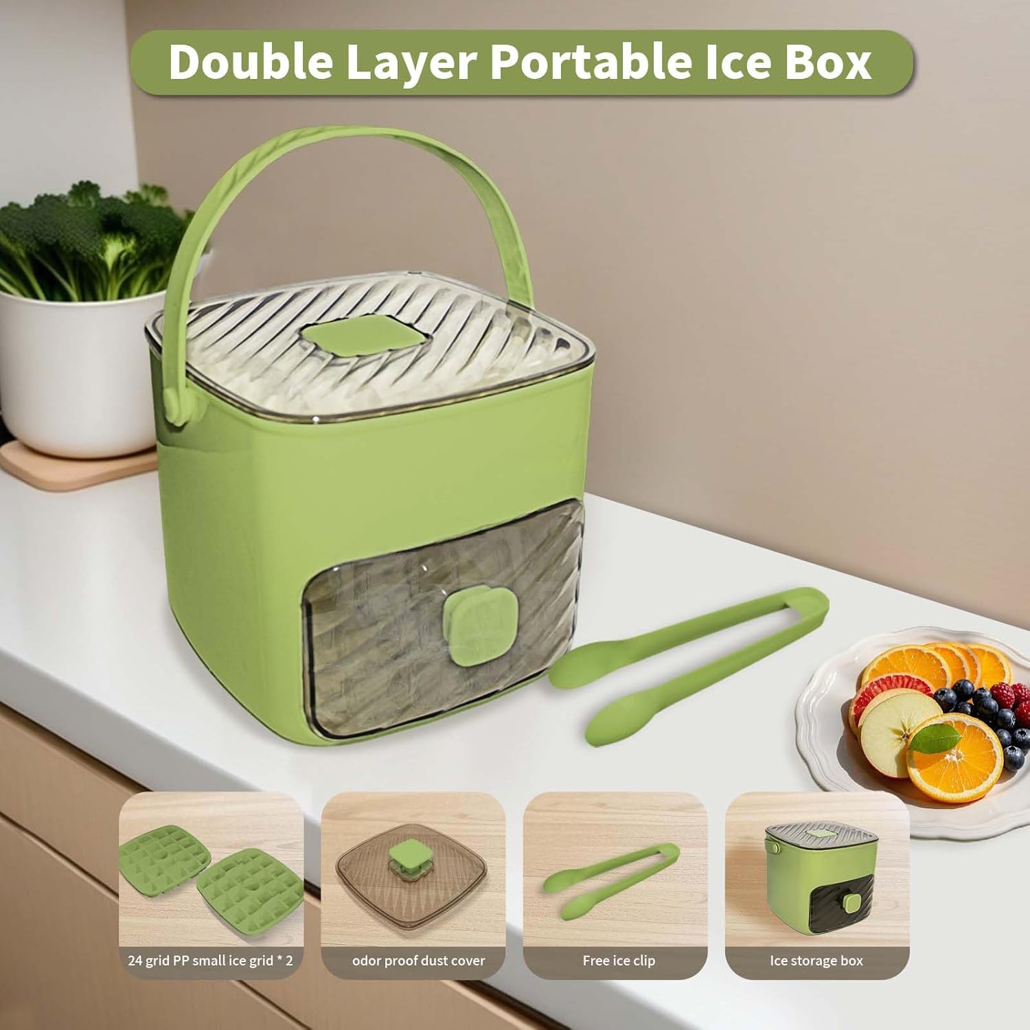 2-in-1 Pressed Ice Cube Box with 48 Grids Ice Tray Mold Storage Fridge
