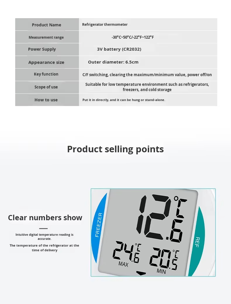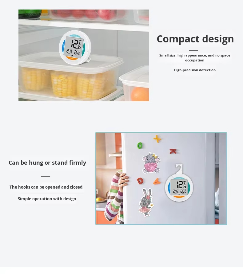 8724A Digital Refrigerator Thermometer Hygrometer Max/Min Display High Precision Indoor Household Temperature Humidity Meter