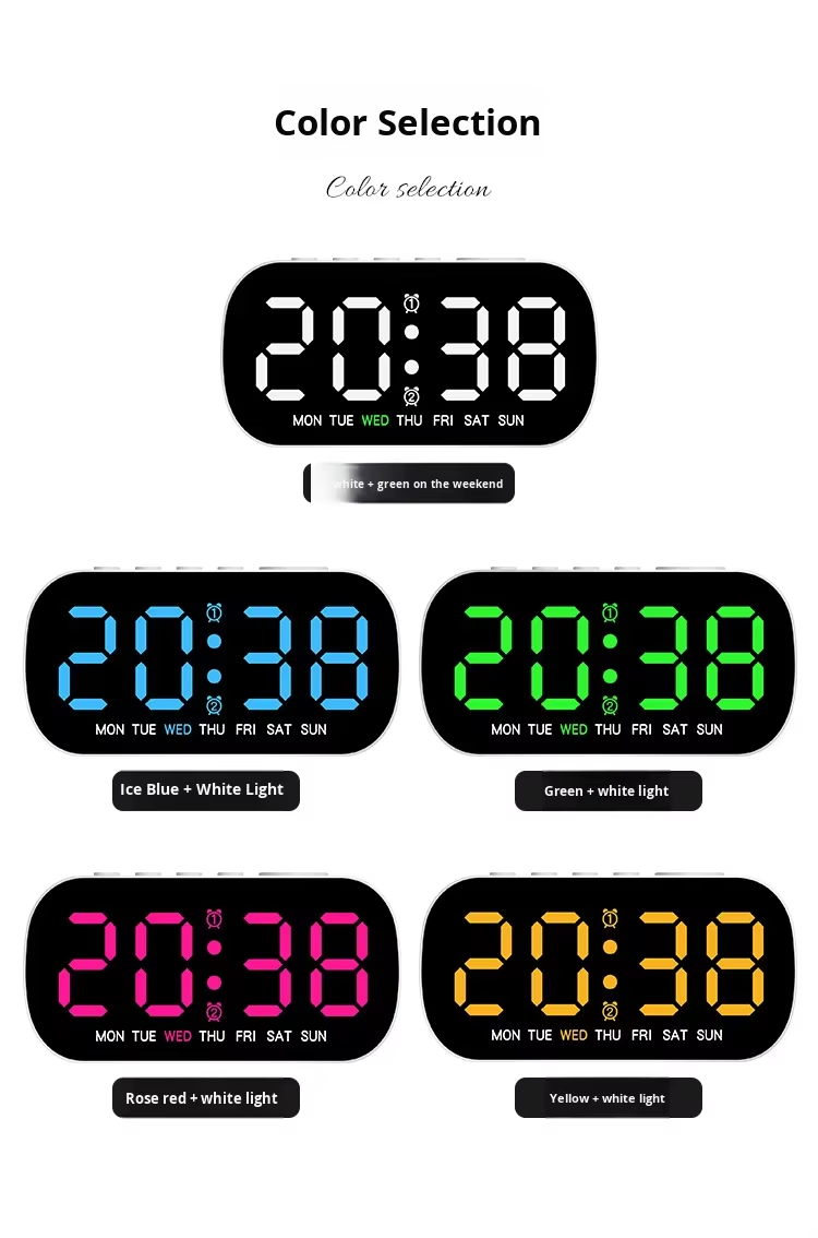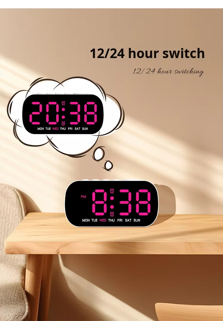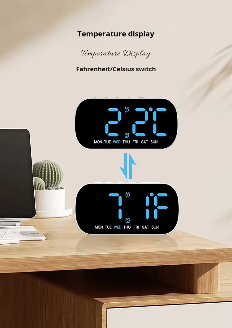 AC-5507 Modern Simple Electronic Multi-Function Alarm Clock LED Digital Display Week Display 24-hour Indication Two Sets USB Desk Clocks