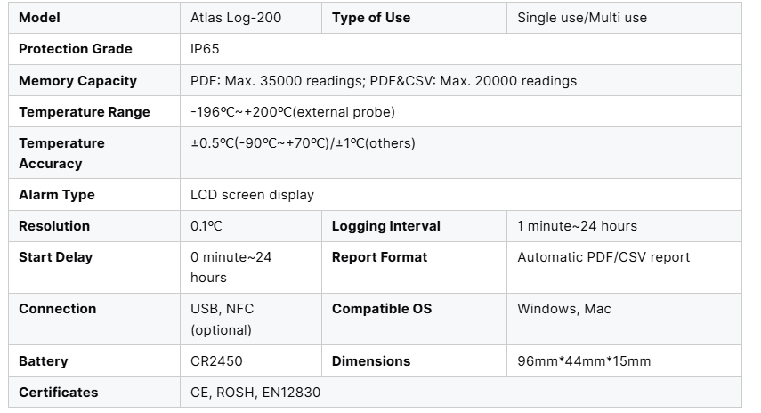 Atlas Log-200 -200°C RLow Temperature Vaccine Refrigerator Temperature Data Logger