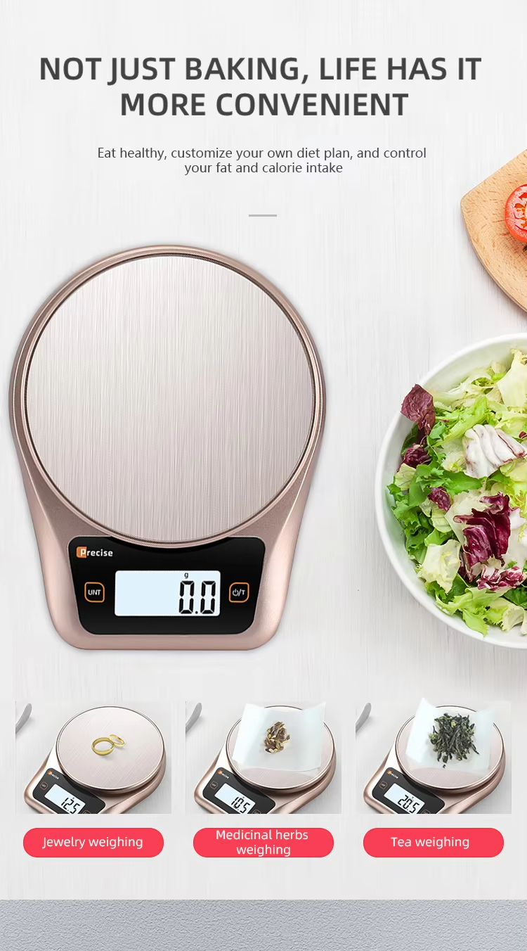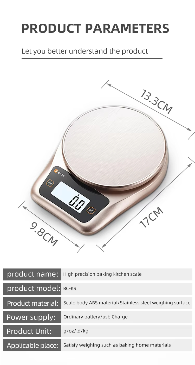 BC-K9 5kg/1g Kitchen Weighing Electronic Scale Bread Baked Food Scale Accurate Gram Kitchen Scale 5000g