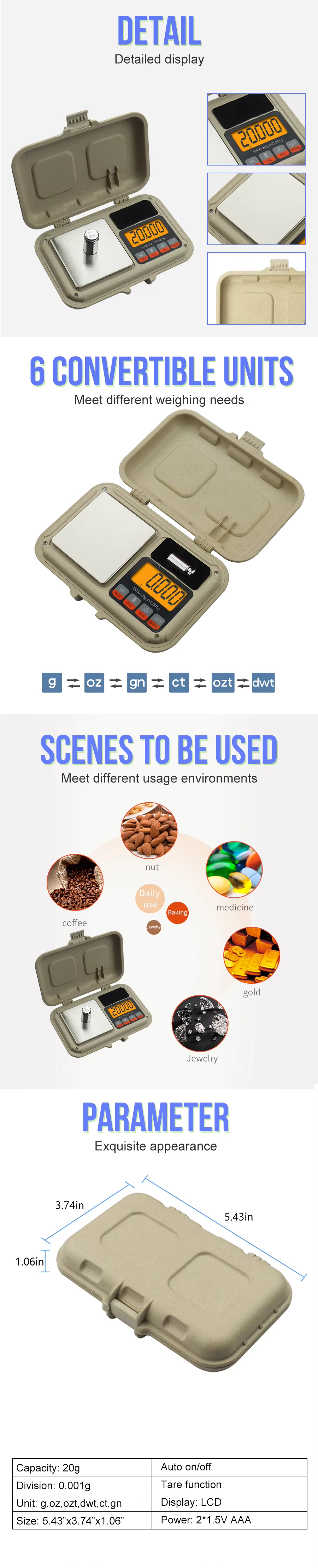 BIO-B-200 200g/0.01g Compact Digital Pocket Scale LCD Backlight with Resolution ABS Material Jewelry Weight Measurement Battery Capacity
