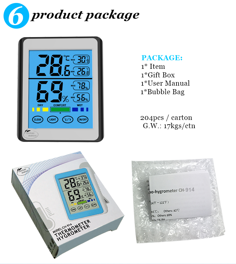 | Key functions: | Temperature/ Humidity/ Max/Min/ C/F |