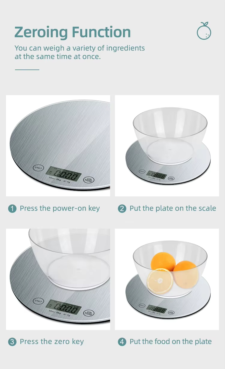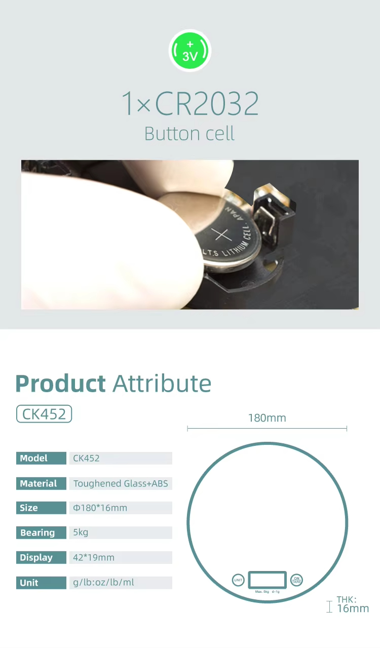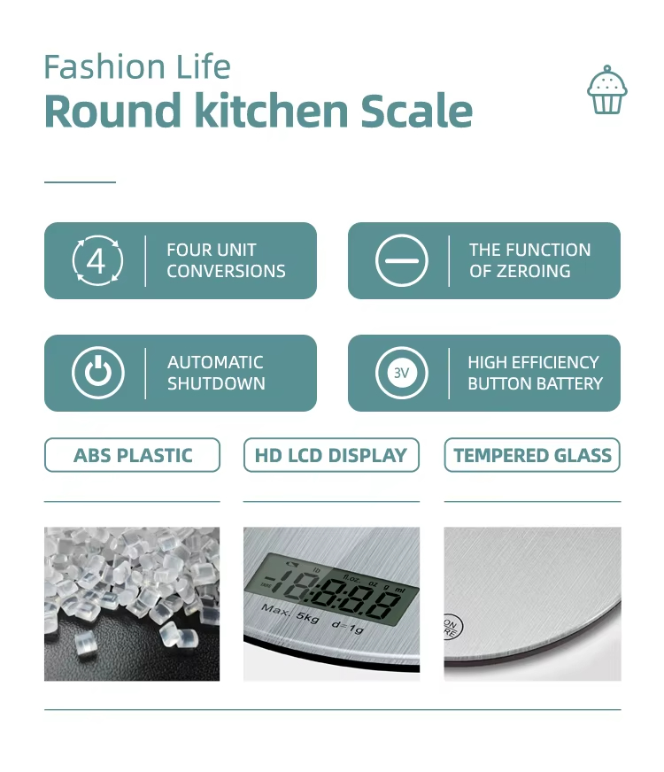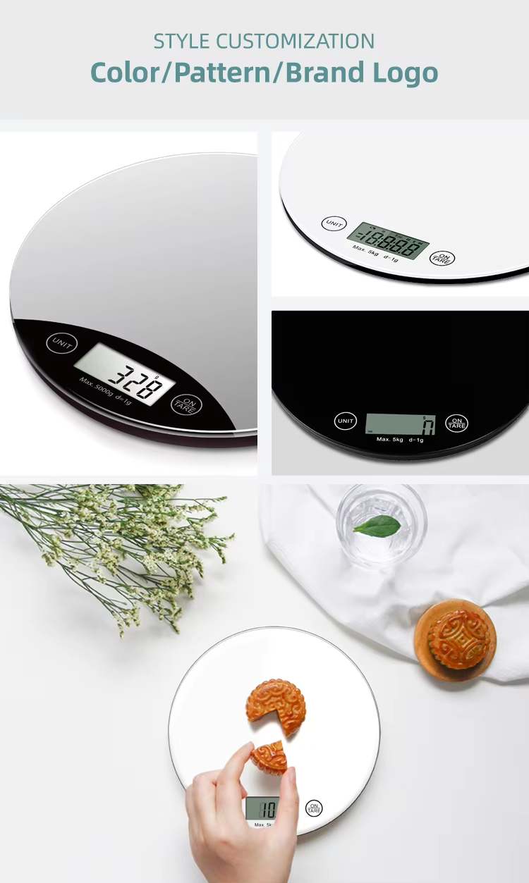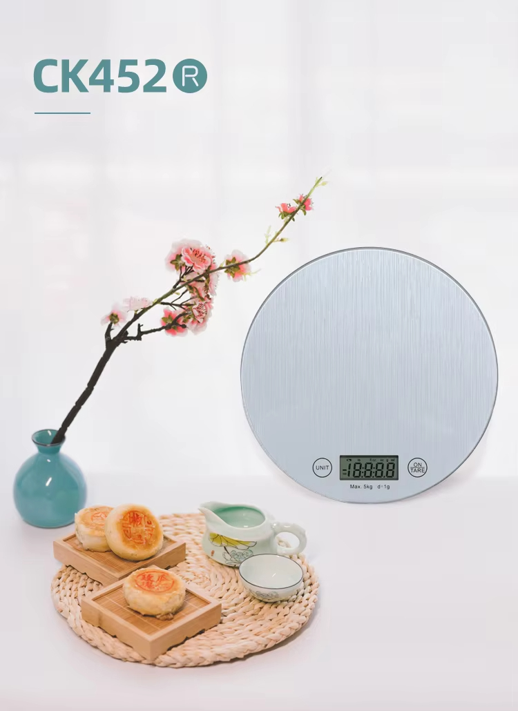 CK452R 3MM Tempered Glass Platform Household Scale Digital Food Round Kitchen Scale 10kg