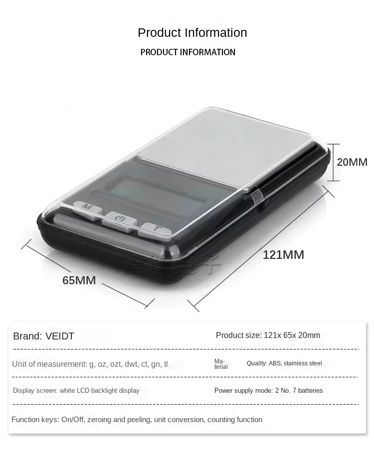 ● Packaging contents: scale + PE bag + color box + English manual + batteries