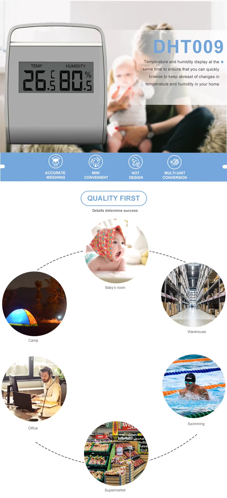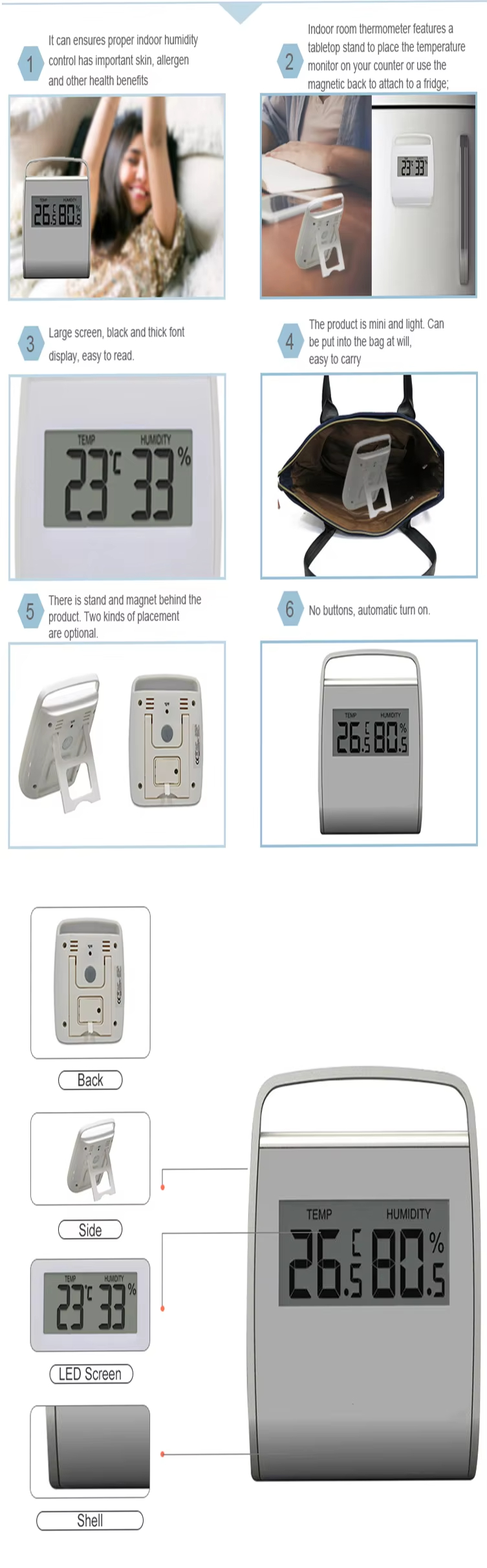 | Function | For checking indoor temperature and humidity to provide a healthy room climate. High precision digital temperature and humidity sensor |