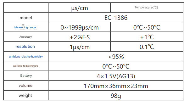 EC-1386 2 in 1 0~1999μs/cm Conductivity/Temperature Tester EC Meter