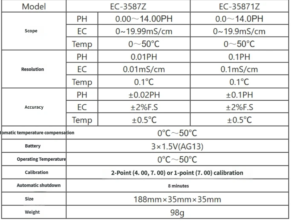 EC-35871Z Waterproof 3 IN 1 0.0~14.0PH EC 0~19.9mS/cm, Temperature Meter