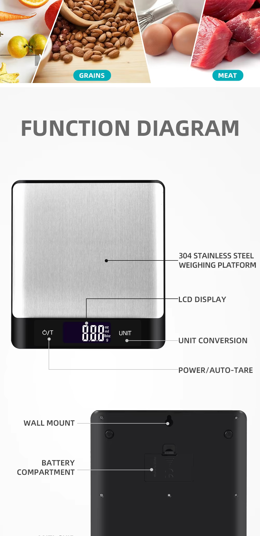 | Type | Digital Kitchen Scale Multifunction Food Scale | ||