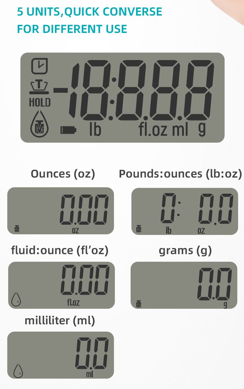 | UNIT | g/oz/fl.oz/water ml/ lb:oz(oz)conversion |