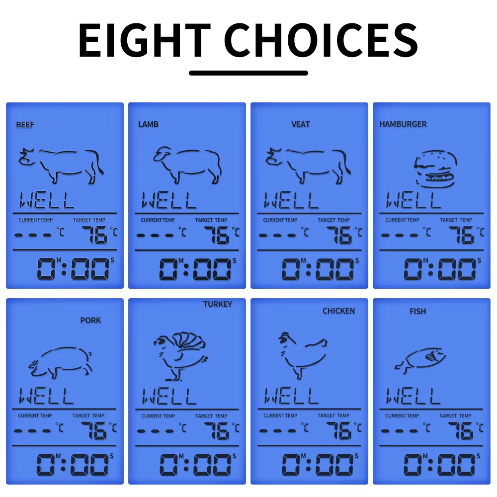 4), 8 Meat Type Selectable(Beef ,Veal,Lamb,Hamburger,Pork,Turkey,Chicken,Fish.)