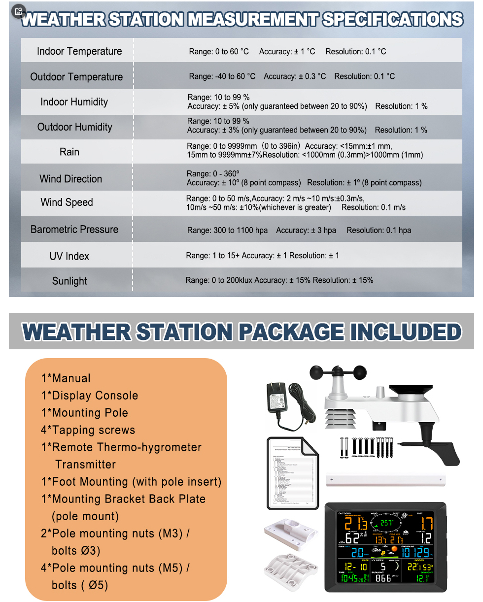 14. Manually calibration of in/outdoor temp, humidity, pressure, wind speed, rainfall, sunlight