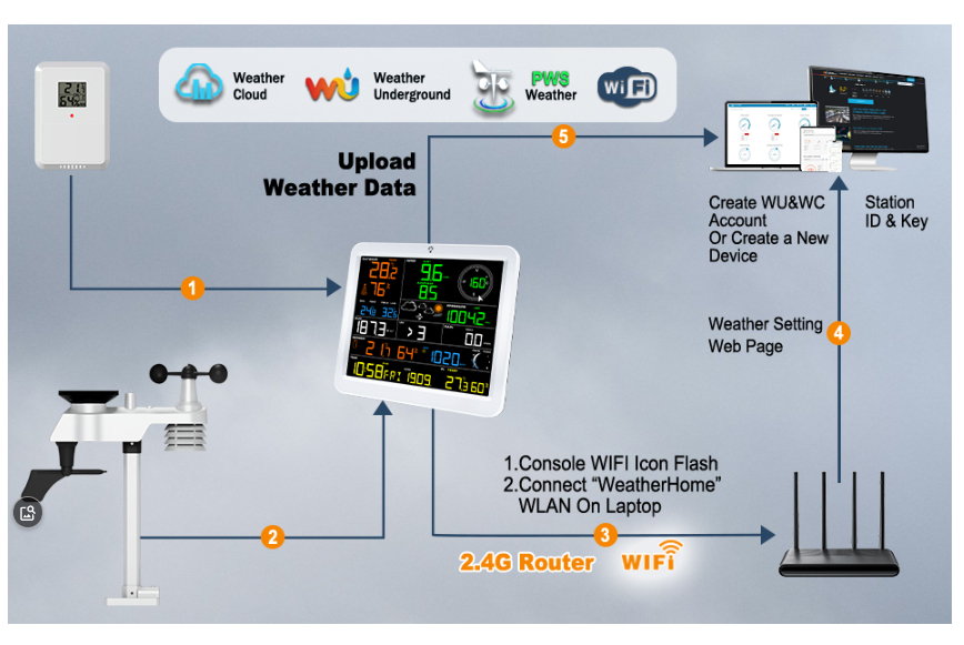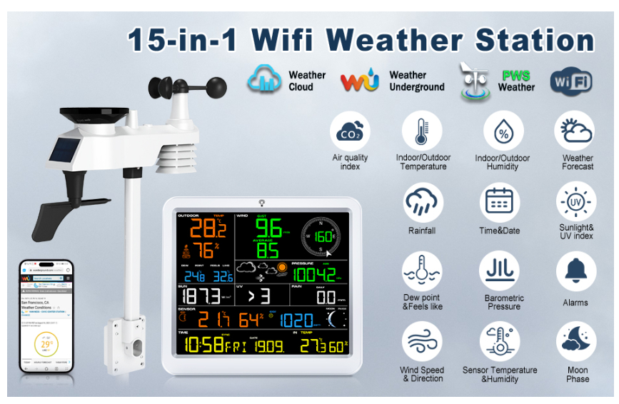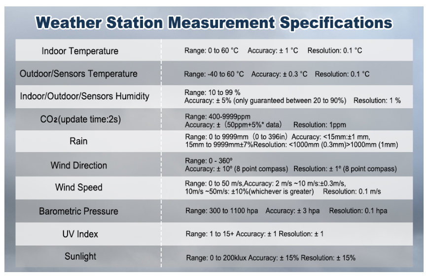 17. Manually calibration of in/outdoor temp, humidity, pressure, wind speed, rainfall, sunlight