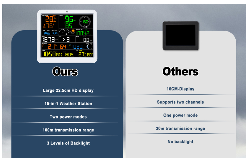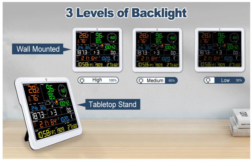 4. Integrated outdoor sensor temp(°C/°F) and humidity – Hi/Lo alarm