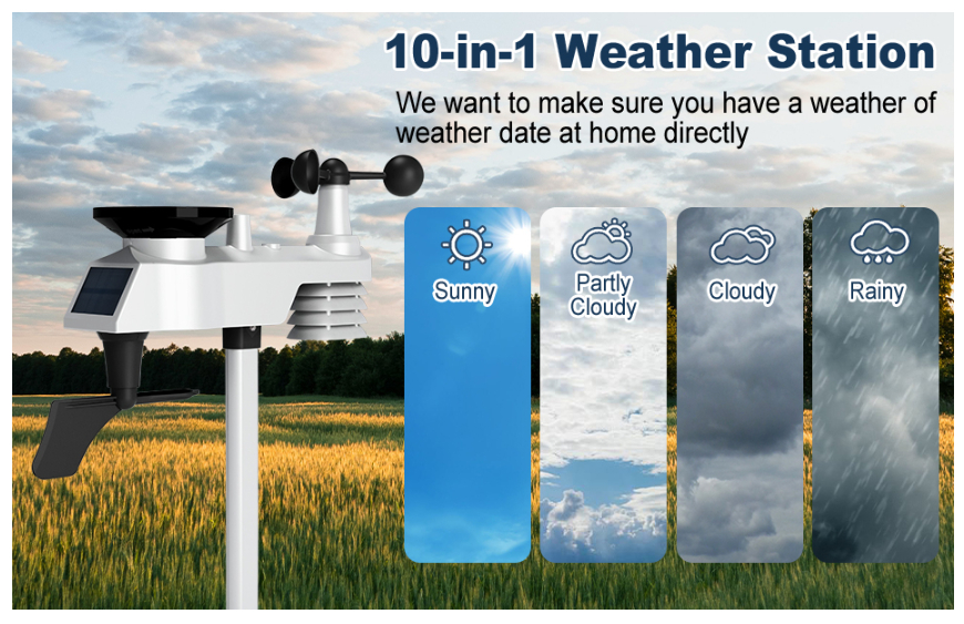 10. Weather forecast (Sunny, partly cloudy, Cloudy, Rainy), Moon Phase