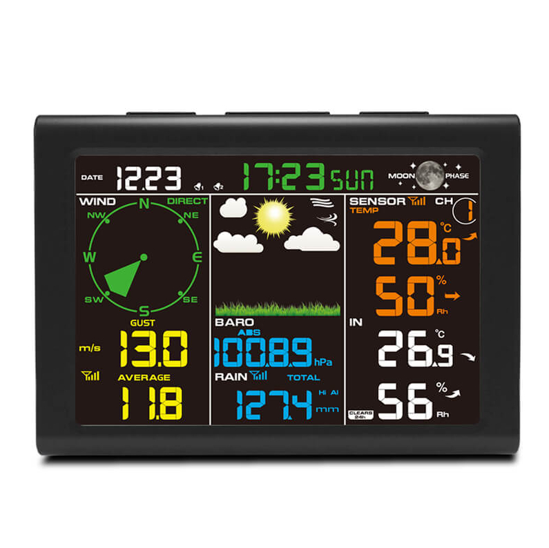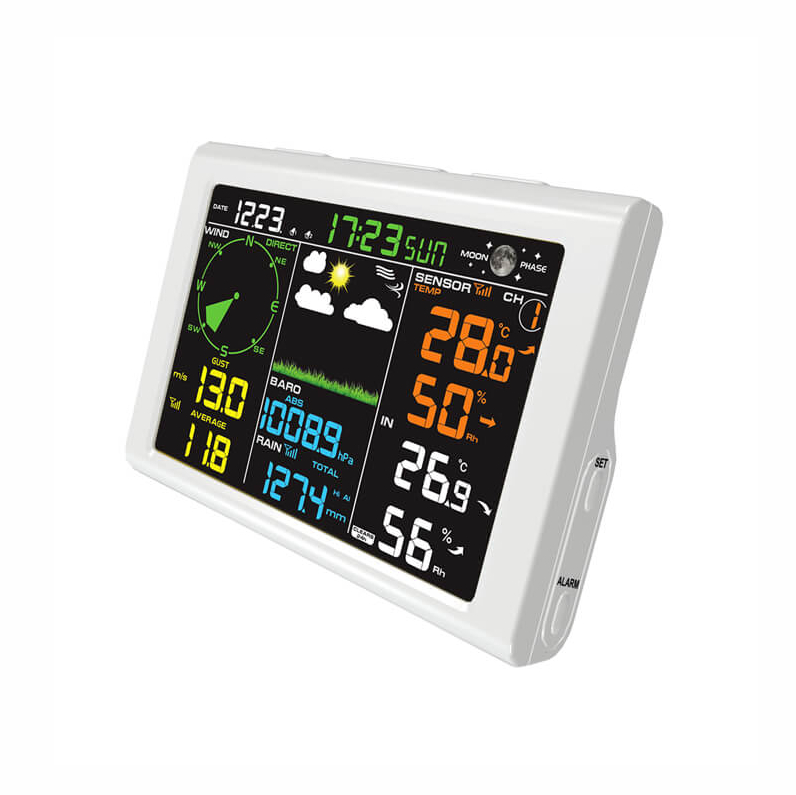6. Wind speed and gust display(m/s, km/h, mph, knots bft) – Hi alarm
