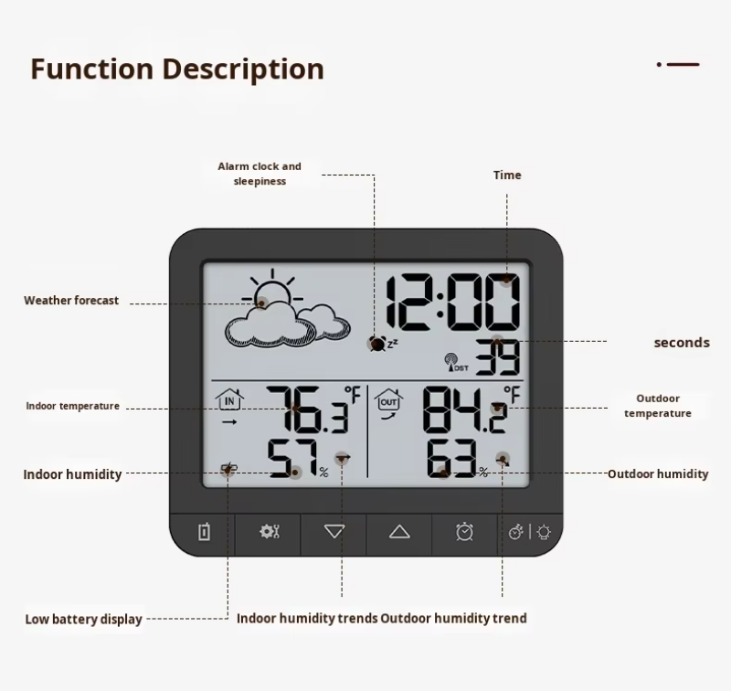 Indoor and Outdoor Temperature Measurement: Accurately tracks indoor temperatures ranging from -9.9°C to +50°C and outdoor temperatures from -40°C to +70°C.