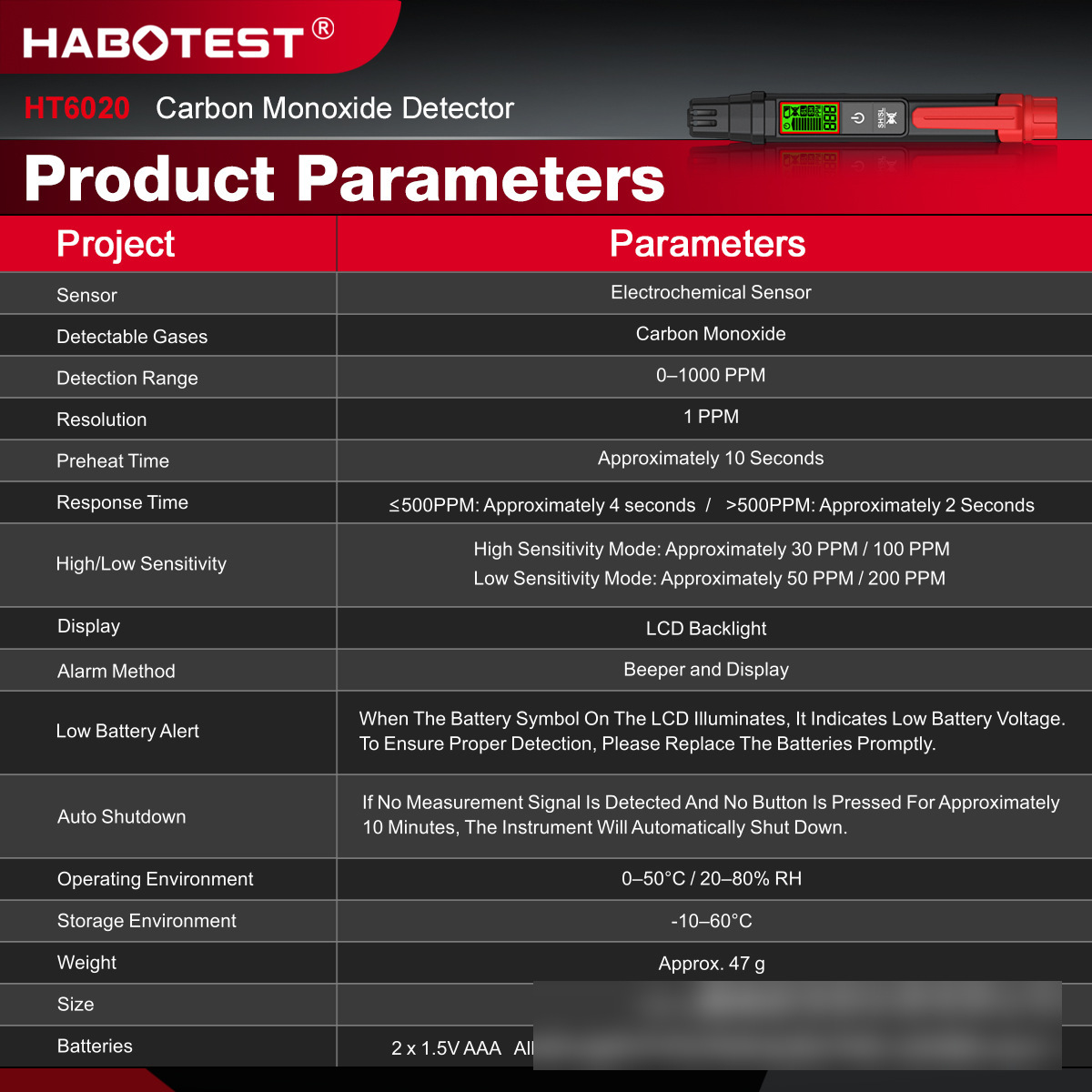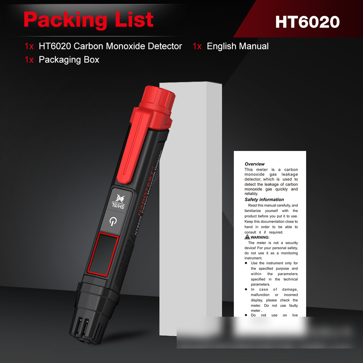 HT6020 CO Meter Carbon Monoxide Detector Portable Detector