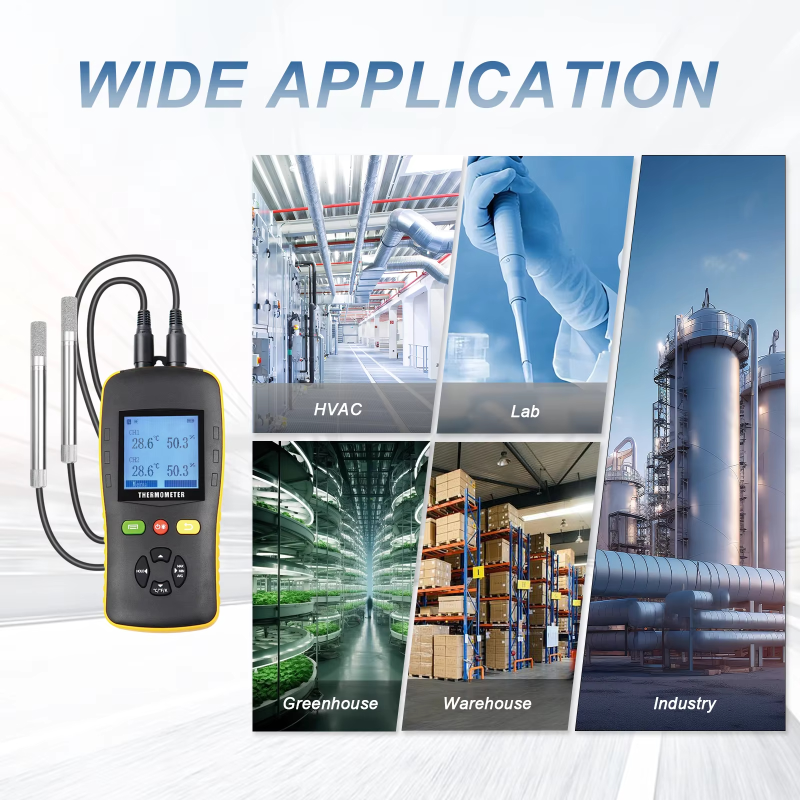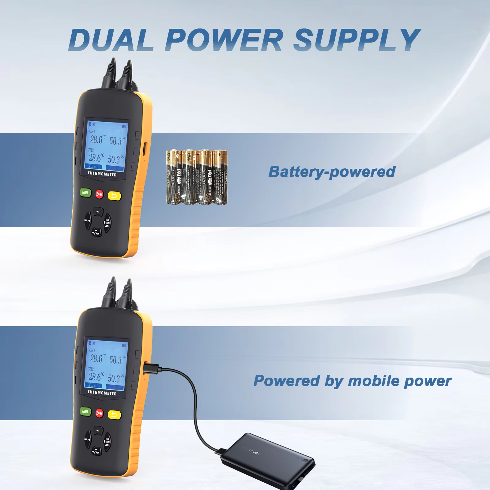 This is a professional Handled Digital Thermometer Temperature Higrometer designed with large LCD display that can shows temperature humidity.The thermometer can be used to measure up to two different temperature humidity at the same time