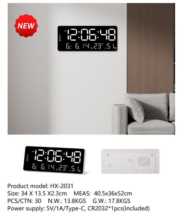 HX-2031 Multifunction LED Desk Alarm Clock Display Temperature Week Calendar Wall Clock Pared Digital Table Alarm Clock