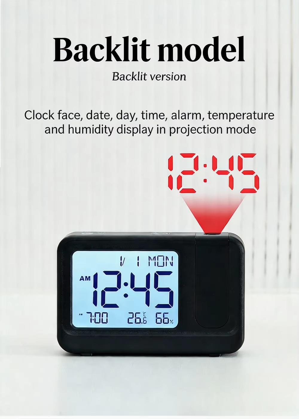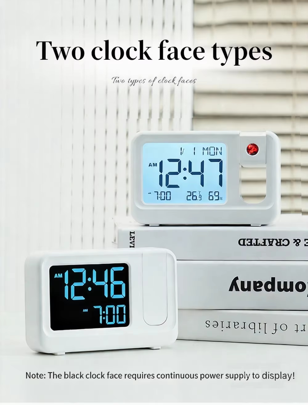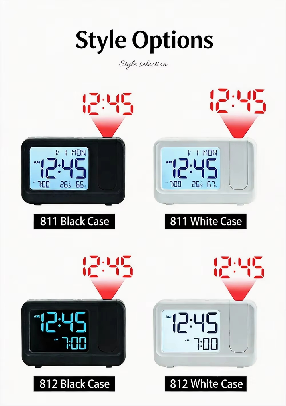 HX-812/811 Modern Electronic Desk Alarm Clock with Digital Projection Snooze Backlight Calendars-Office & Bedroom Decor