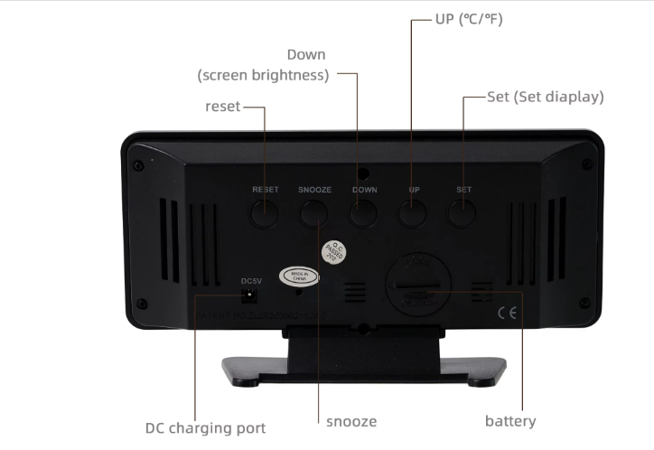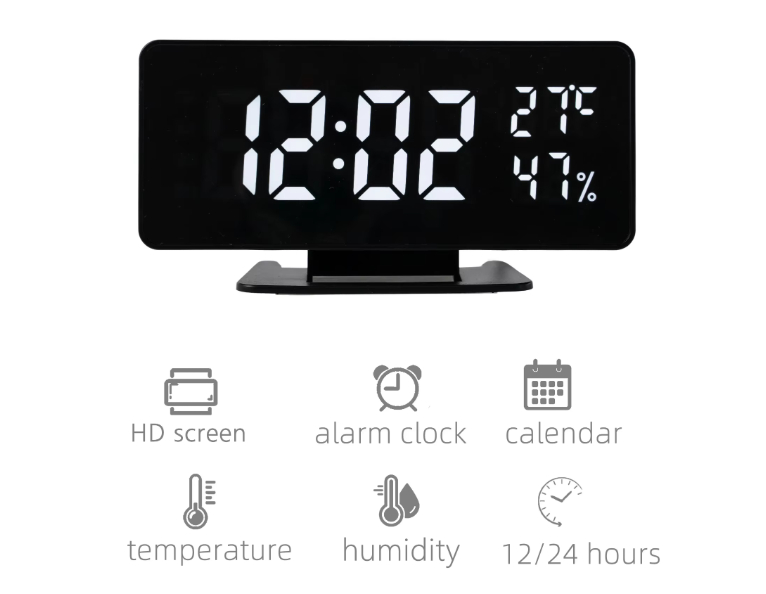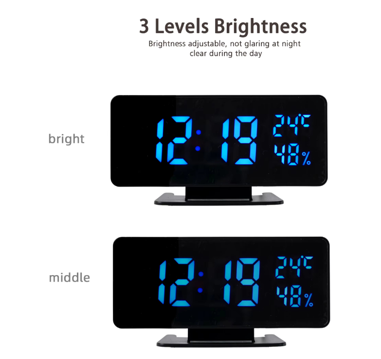 | Function | Date,Time,Temperature(℃/℉),2 sets of alarm .voice control,3 kinds of brightness.night mode. | |||