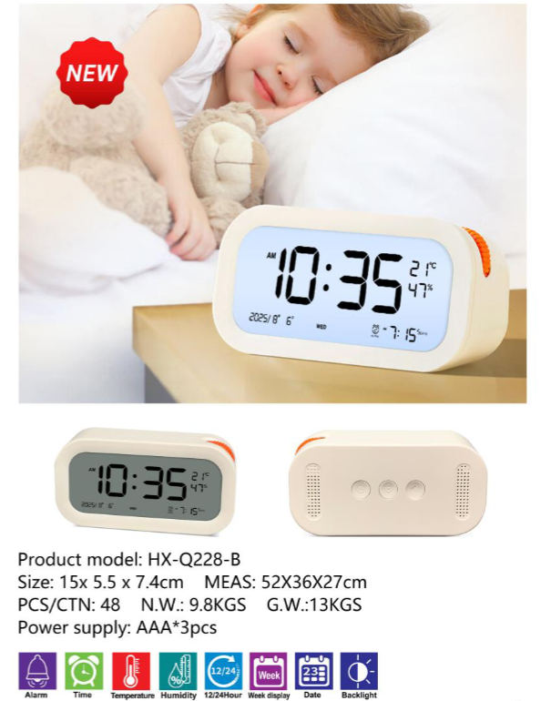 HX-Q228-B Multifunction Intelligent LCD Screen Visualization Timer Calendar/Alarm/Temperature Smart ABS Large for Home Use