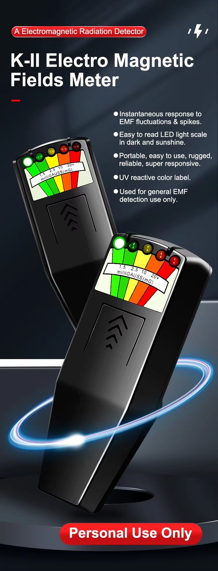 K-II LED Magnetic Field Detector Ghost Hunting Paranormal Equipment Tester Portable Counter K-II LED EMF Meter