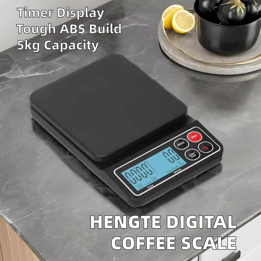 K09-5000 5kg/0.1g Hengte Wholesale Electronic Coffee Scale Coffee Kitchen Weighing Scale with Timer Digital Coffee Scale