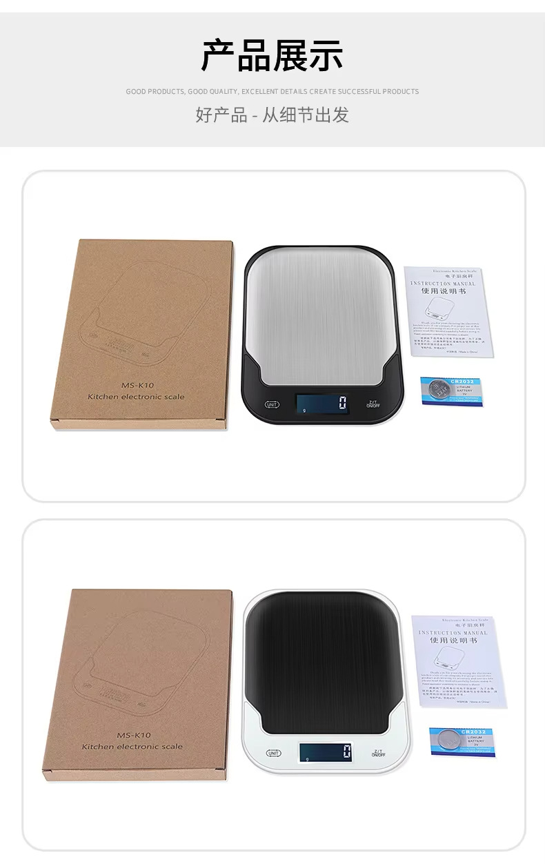 LW-K10 Custom Thin Stainless Steel Portable Electronic Kitchen Scale Small Household Bench for Weight Measurement for Food Pastry Baking