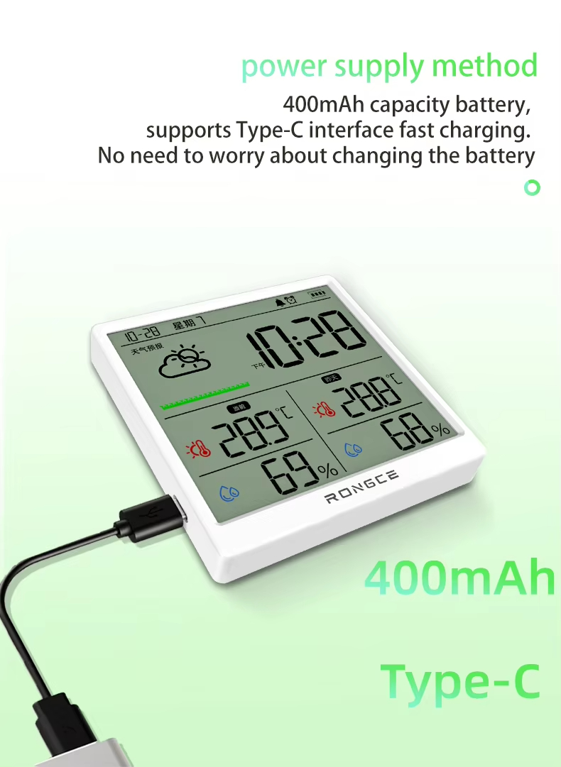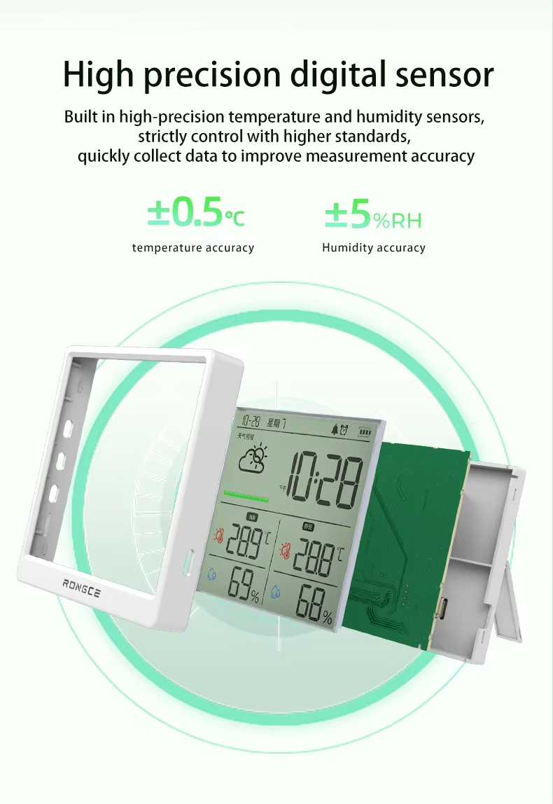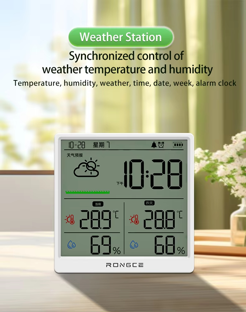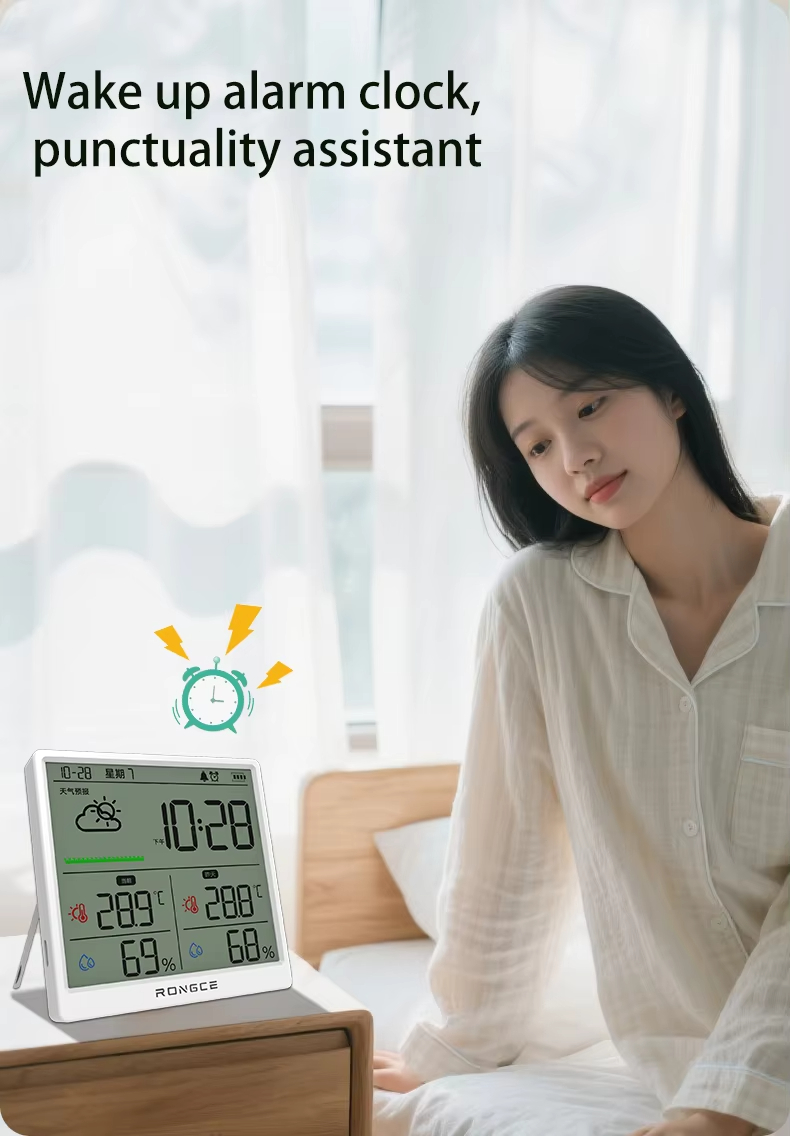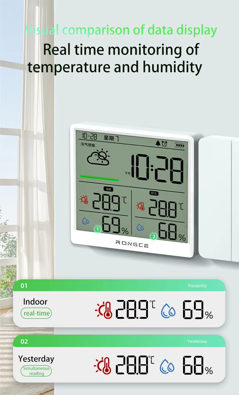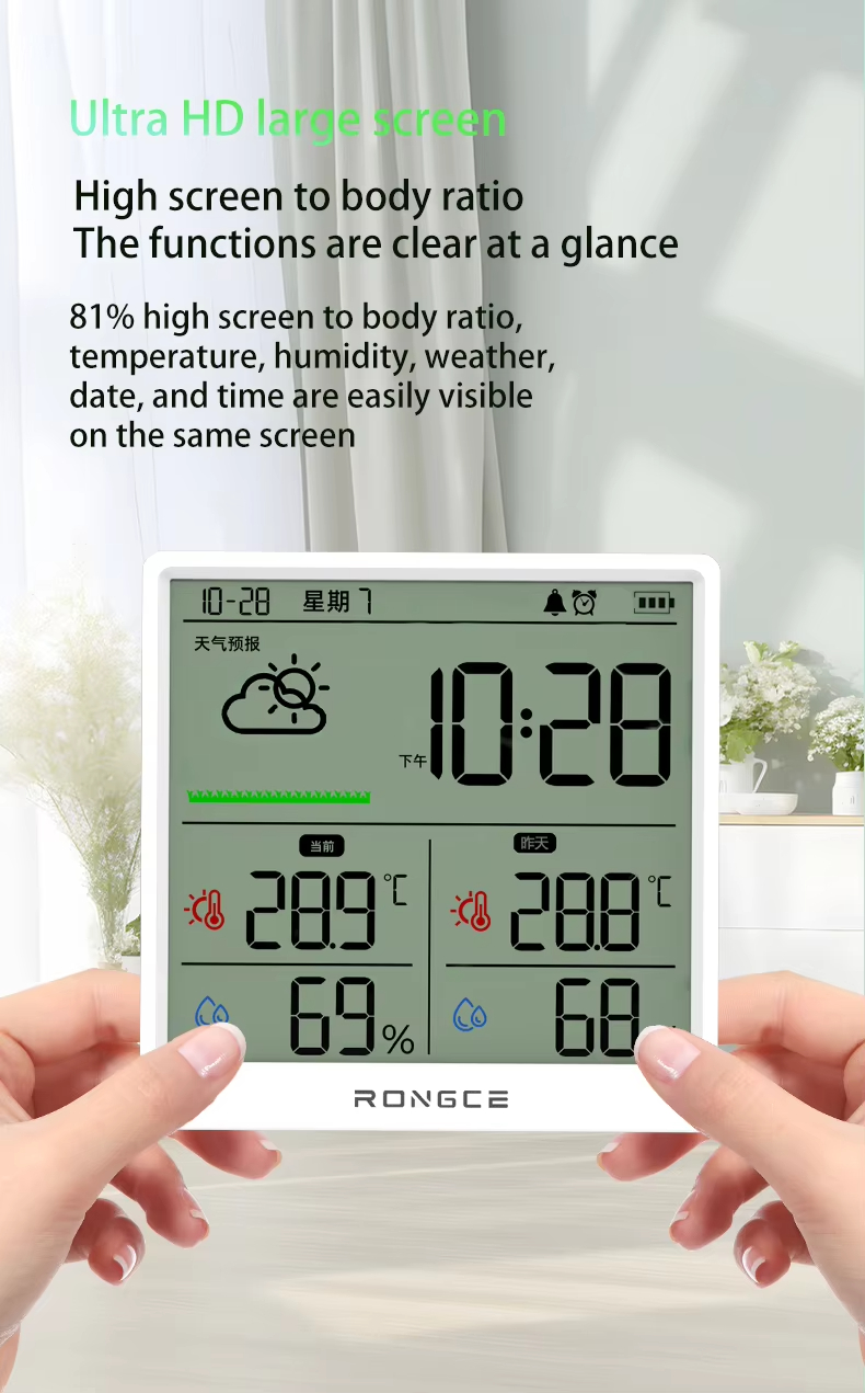 LX8108 Digital Modern Hygrometer Temperature Humidity Meter High Precision LCD Touch Control Portable ABS Battery Operated Home
