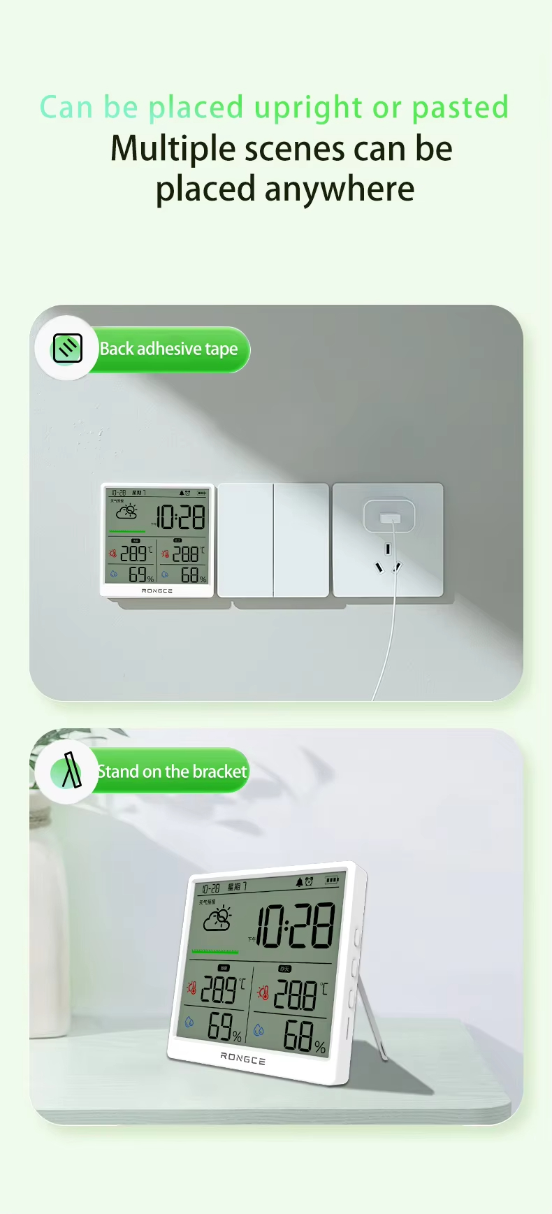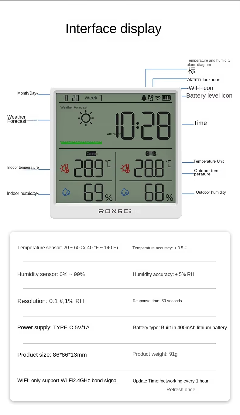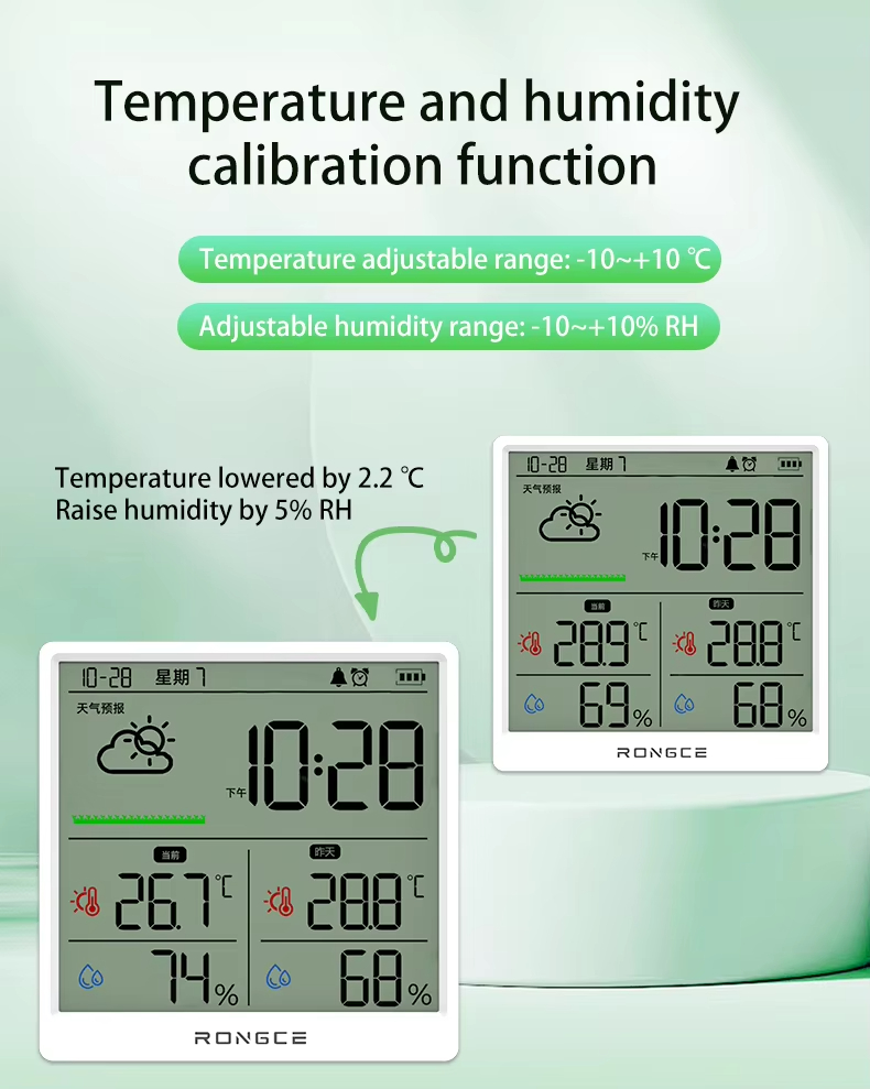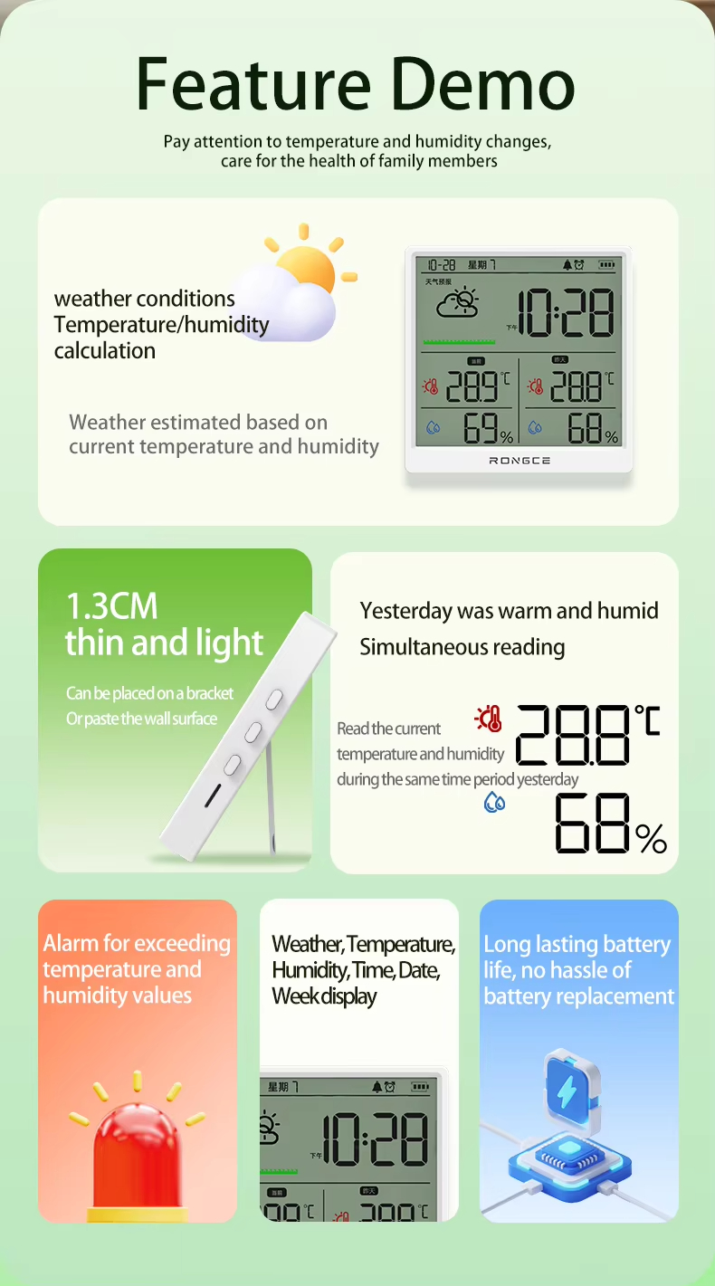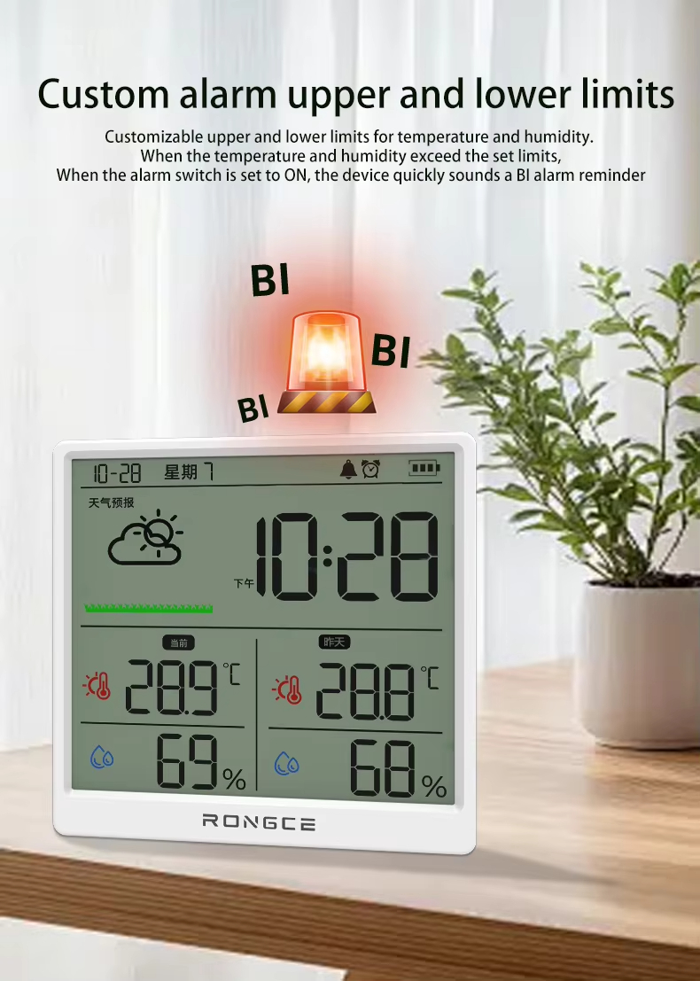 LX8108 Digital Modern Hygrometer Temperature Humidity Meter High Precision LCD Touch Control Portable ABS Battery Operated Home