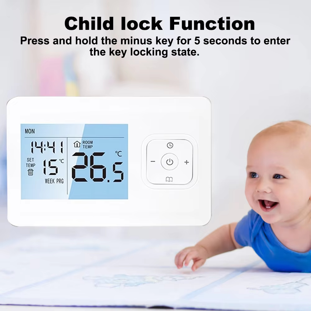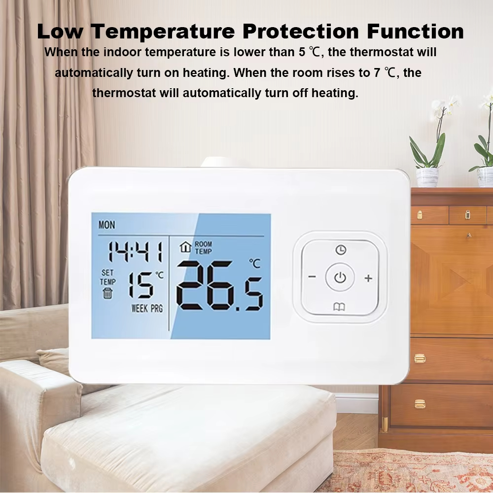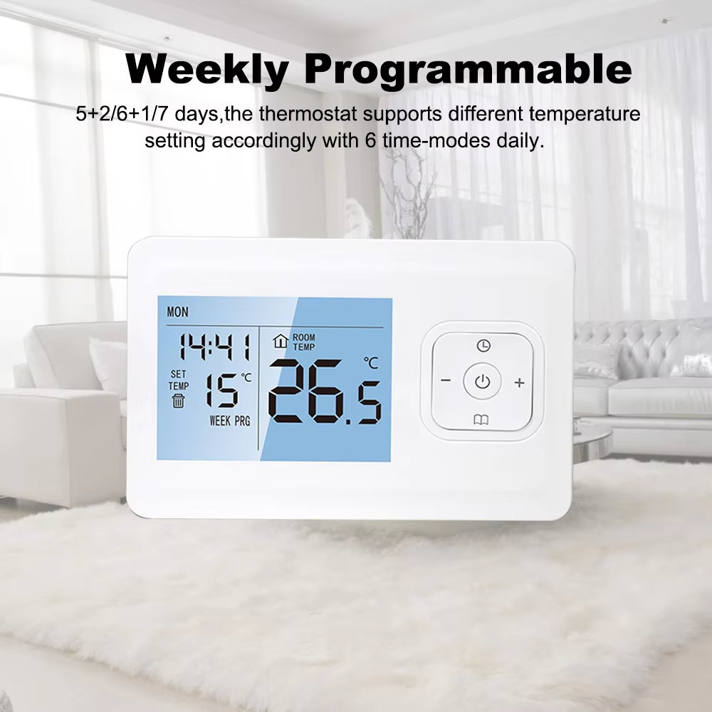 [Weekly Programmable]The thermostat supports different temperature setting accordingly with 6 time-modes daily.