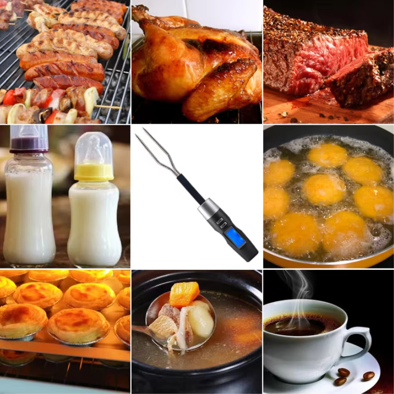 MFT-4 Handheld Barbecue Thermometer Electronic Double Fork Thermometer Digital LCD Display Picnic BBQ Meat Thermometer Kitchen Cooking