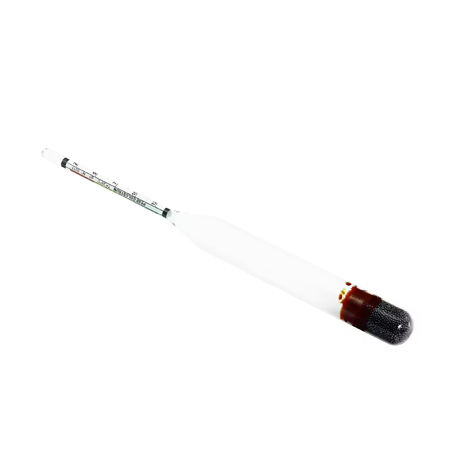 This 25-125% Glass Milk Hydrometer is designed for precise colostrum density measurement, made of durable glass with a measuring range of 25-125%. It features a length of 195±10mm and operates at a standard temperature of 20°C. The product supports OEM customization and comes securely packaged in a plastic tube.