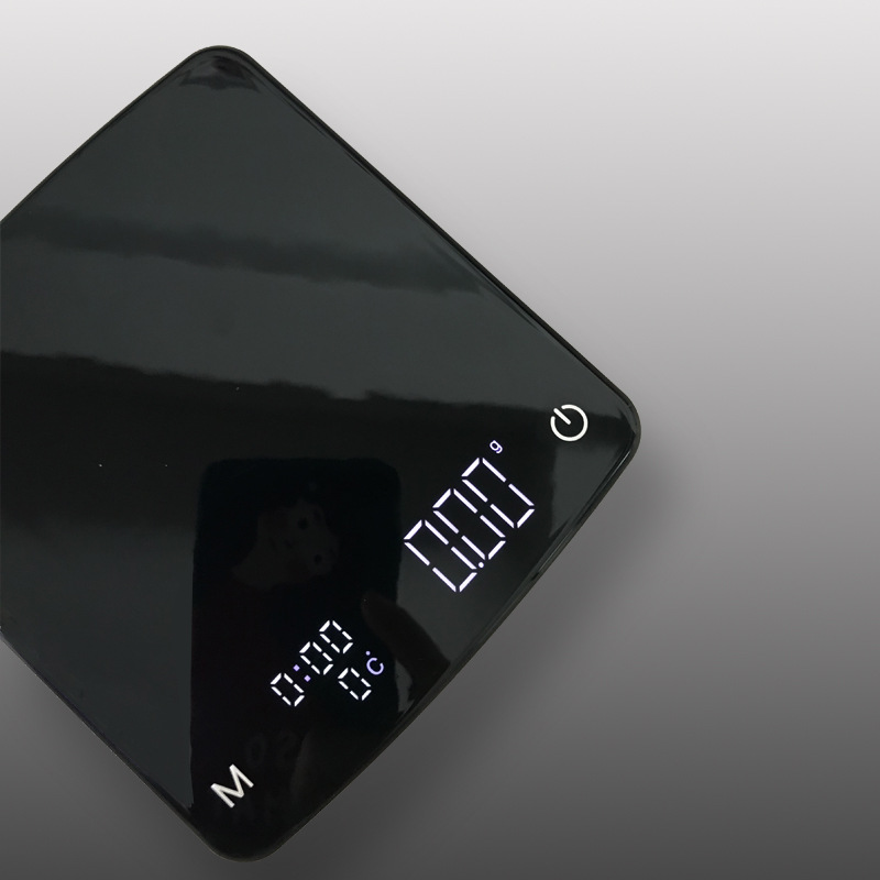 Function: Rechargeable (blue light on during charging) timing, weighing, temperature measurement, low battery display (red light on)