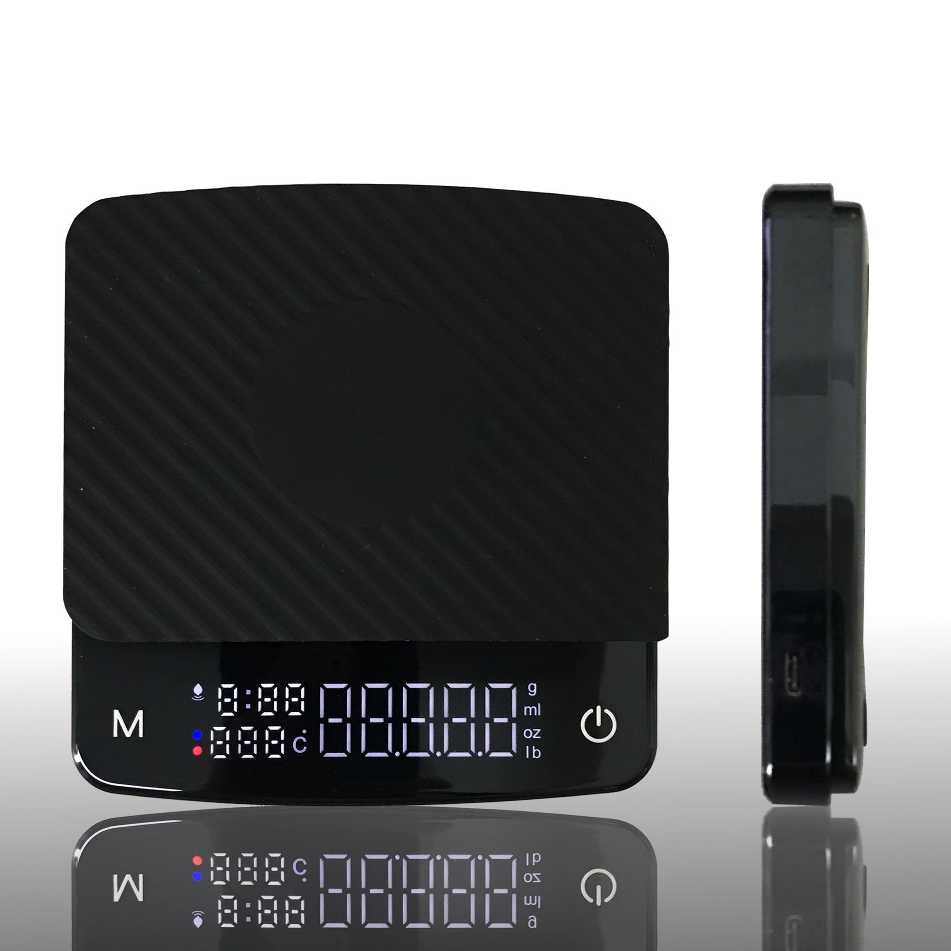 Function: Rechargeable (blue light on during charging) timing, weighing, temperature measurement, low battery display (red light on)