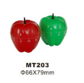 MT203 Design Plastic Eco-Friendly Apple Timer 60 Minutes Count Down Mechanical Fruit Kitchen Timer Rotary Timer