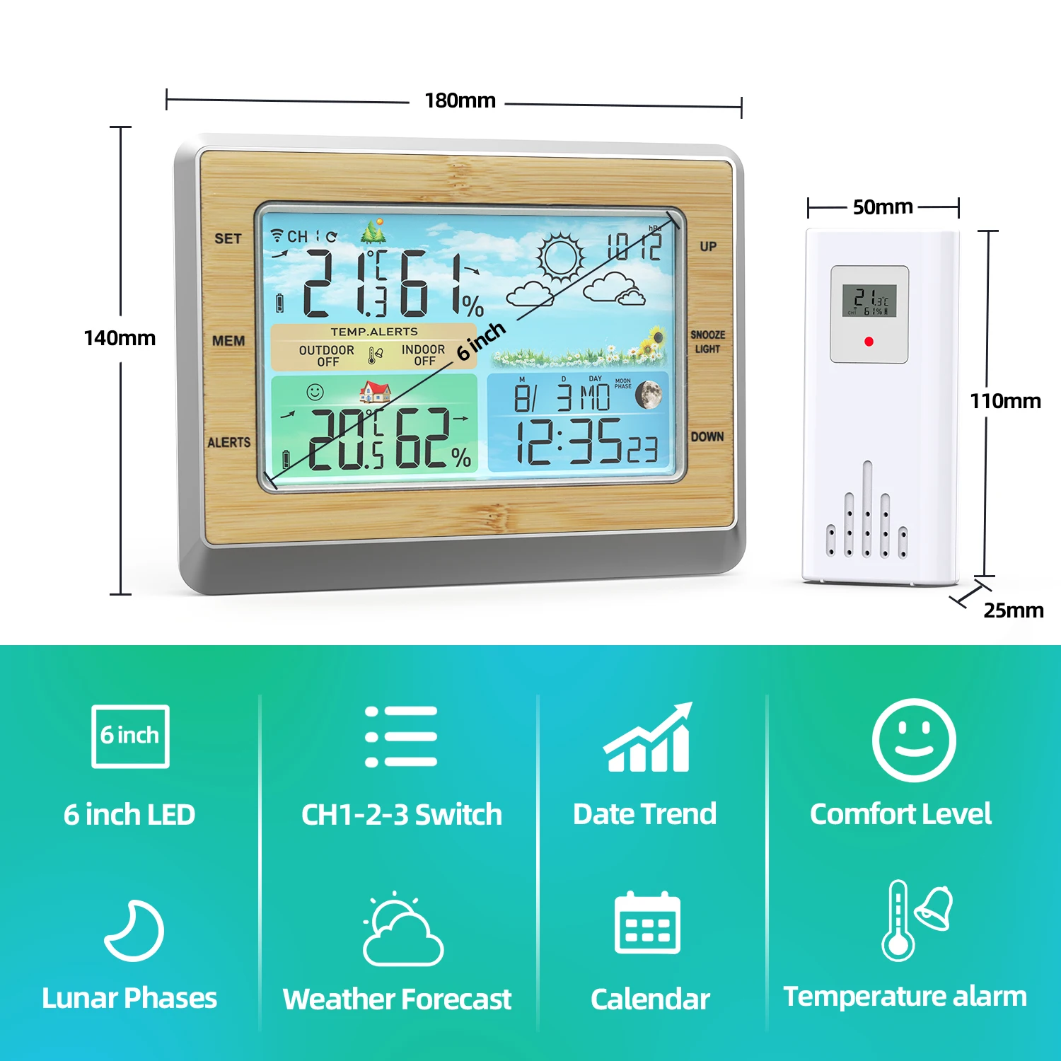 6 different Weather Forecast, High&Low Temperature Alert Settings |