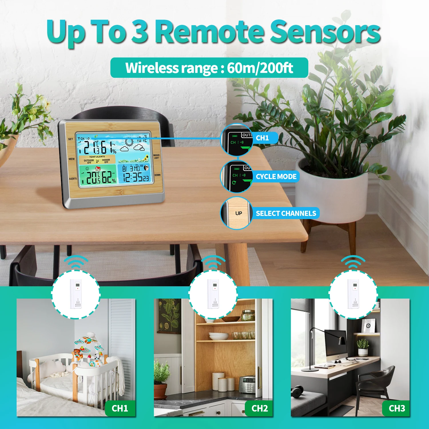 The main unit can connect up to 3 remote sensors at the same time |