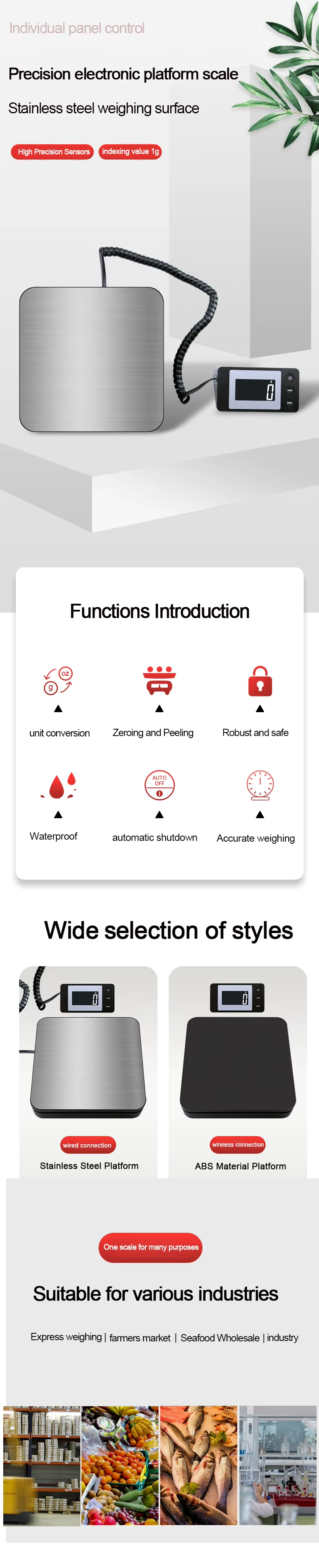 Measurement range: 50kg/2g (customizable options: 10kg/1g, 20kg/1g, 40kg/2g)