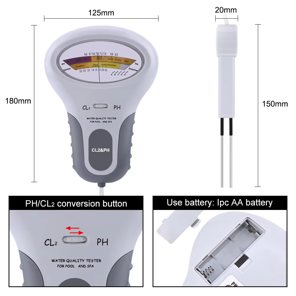 PC102 CL2&PH Tester Portable Residual Chlorine Detector Water Quality Analyzer for Drinking Water Spa Swimming Pool Aquarium