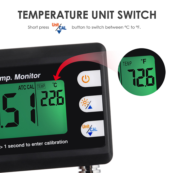 It is equipped with Automatic Temperature Compensation (ATC), so temperature change can't affect on pH level measurement.